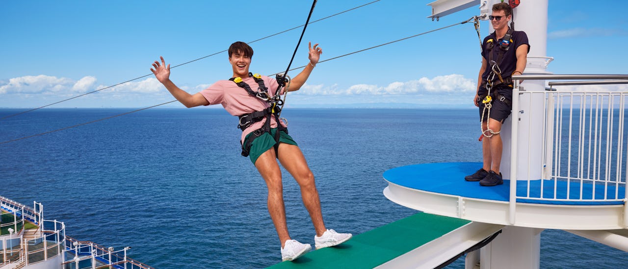 Utmana dig själv med att åka zipline över övre däck