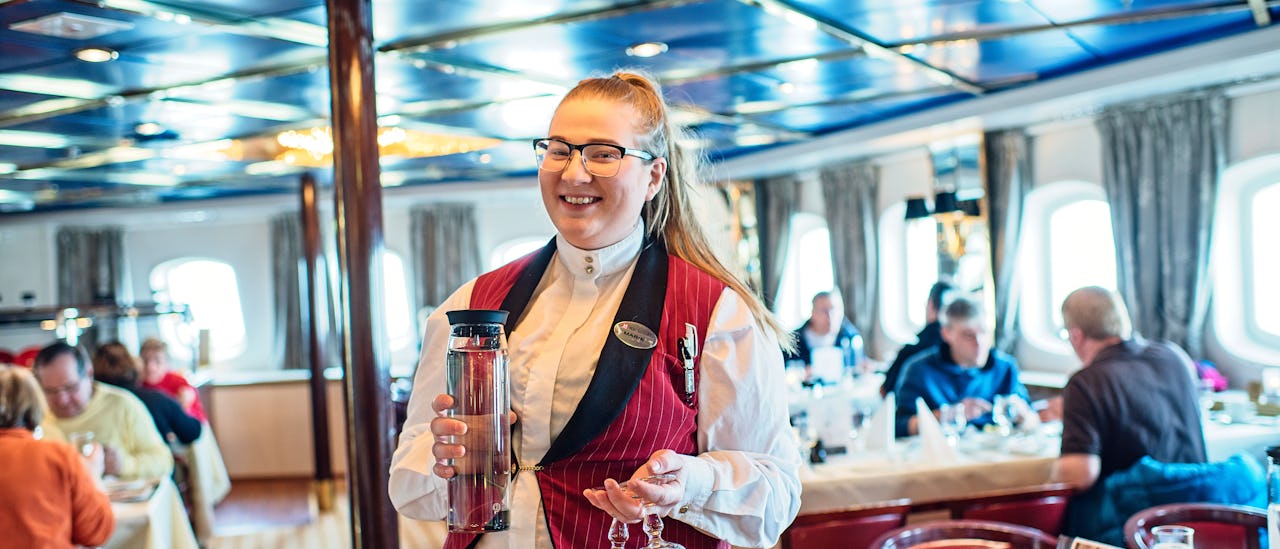Upplev spektakulära kustlandskap med fartyget uppkallat efter Hurtigrutens allra första fartyg. MS Vesterålen är ett av Hurtigrutens mindre fartyg som erbjuder en härligt intim atmosfär.