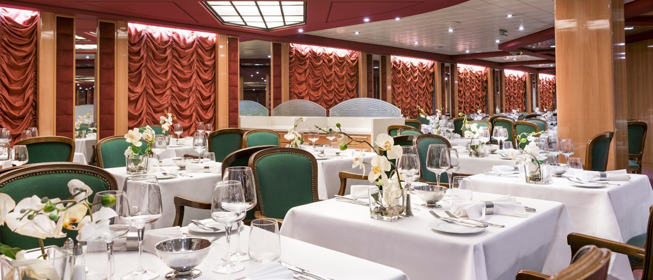 Det finns ett stort utbud av stilfulla restauranger ombord. A la carte och bufférestaurangen ingår i kryssningsbiljetten. Önskar ni nån av kvällarna äta på någon av fartygets specialrestauranger tillkommer dock en kuvertavgift.