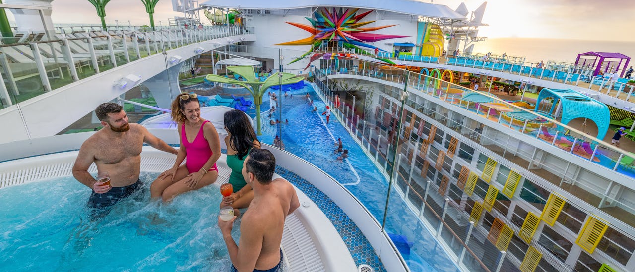 Royal Caribbeans kryssningsfartyg från 2024, Icon of the Seas, utlovar ett semesteräventyr för alla i familjen. Fartyget har plats för 7600 passagerare och ombord finns 7 pooler, en vattenpark, vattenrutschbanor och bubbelpooler.
